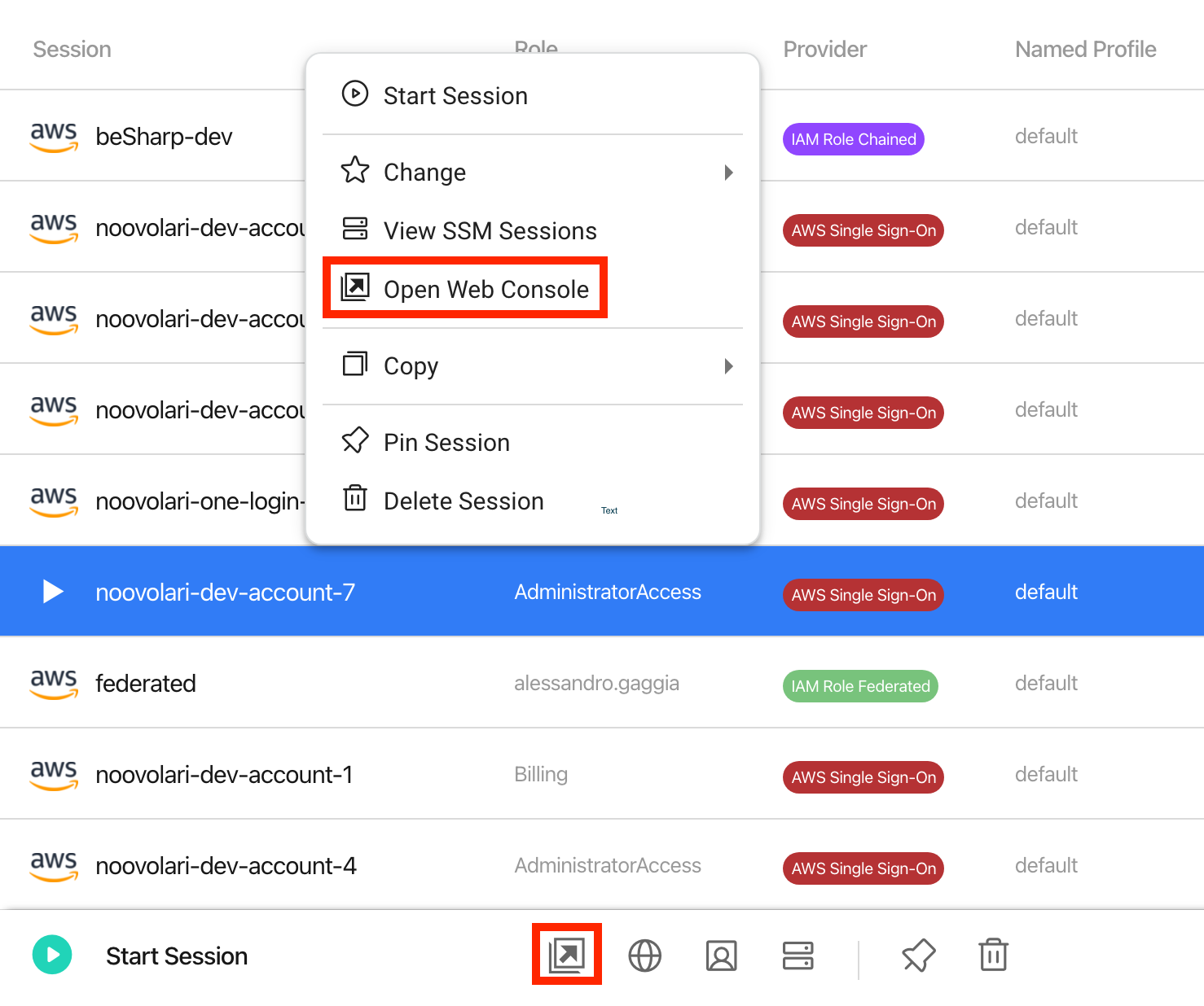You can open the AWS Web Console directly from Leapp, without having to log in, input your credentials, or select the role to assume.