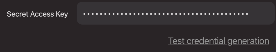 Clicking this button allows Leapp to do a dry run on your parameters, and if valid, a new set of credentials will be generated (but not used) and an informative toast will appear to tell you that they can be used successfully.